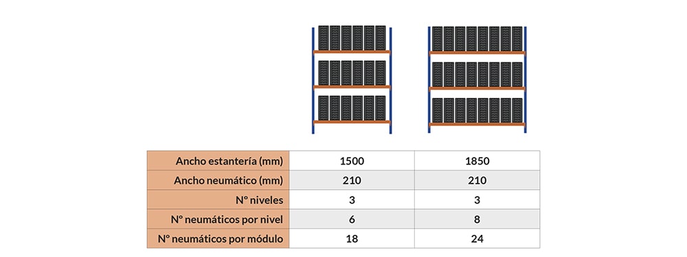 Zeer robuuste stelling voor de opslag van banden.