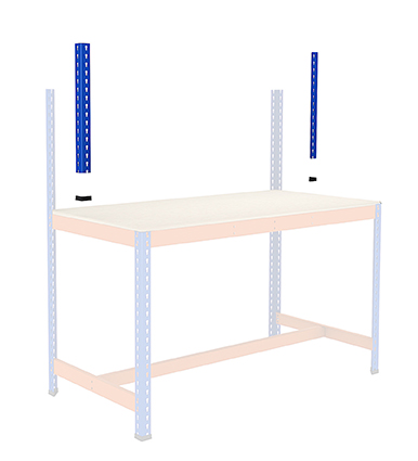 - 2 blauwe geperforeerde staanders, 596 mm hoog.