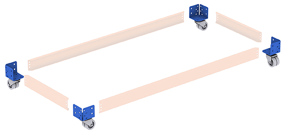 - Set van 4 wielen met een diameter van 75 mm, hoekplaten en bouten en schroeven.