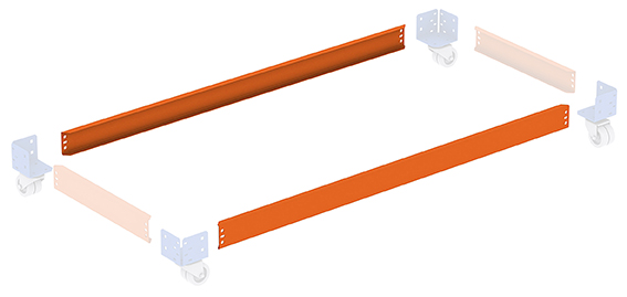 - 2 dwarsliggers van 600, 800 of 1000 mm voor de diepte.