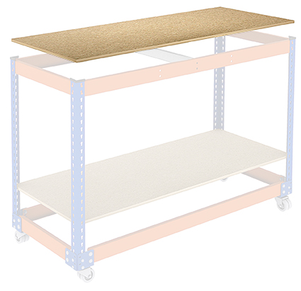 - 1 centrale verstevigingsbalk (2 voor de werkbank van 1800 x 1000 mm). Alleen op bovenblad..