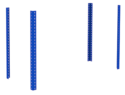 - 4 blauwe geperforeerde staanders, 800 mm hoog..